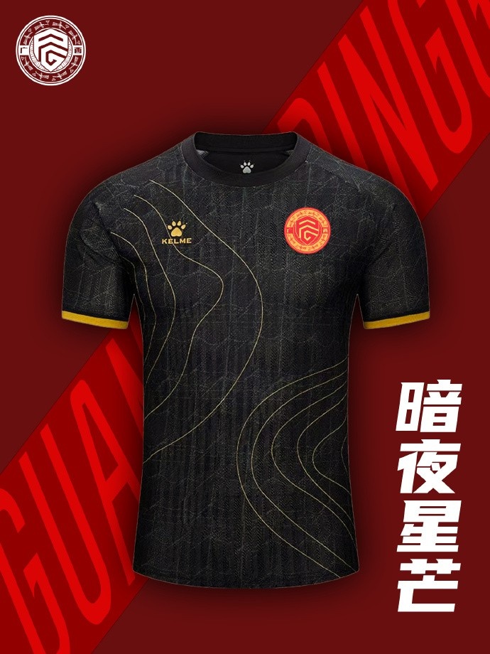 第二客场球衣源自广西黑衣壮的族群标记,黑色代表着力量与神秘,亦预示着球队在新赛季中将如黑夜中的捕手,以冷静的头脑和坚强的意志,在关键时刻给予对手致命一击。胸前的金色线条既是喀斯特奇峰的暗号,亦是龙脊梯田优美曲线的化身,暗色底纹如球网交织,象征着球队在缠斗中迸发出无穷的力量,无论何时何地,都将以奋力一搏的姿态夺取最终的胜利!